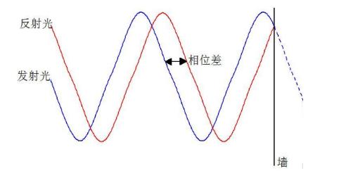 In the figure, the blue line represents the emitted light, and the red line represents the reflected light. It can be clearly seen that when the emitted light hits a wall and is reflected, the waveform of the reflected light is essentially a mirror image of the waveform that would exist without the wall. Therefore, the magnitude of the phase difference has no relation to the speed of light, but is related to when the emitted light encounters an obstacle.